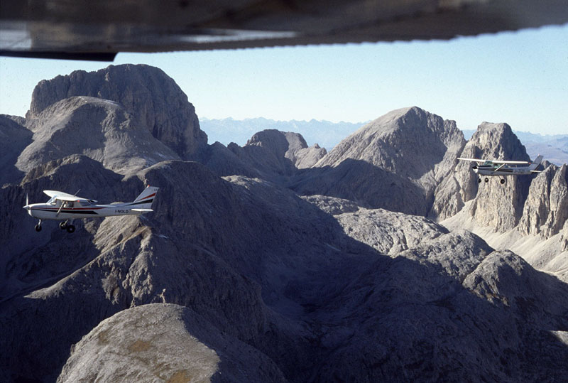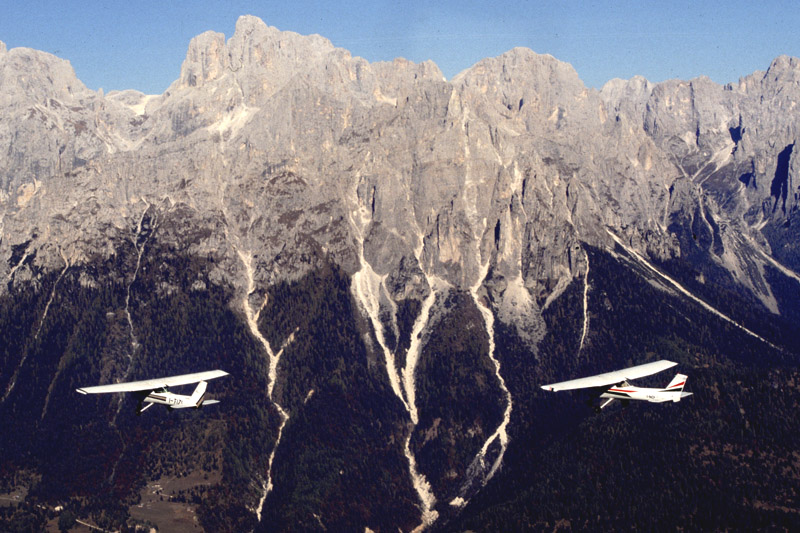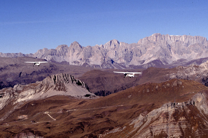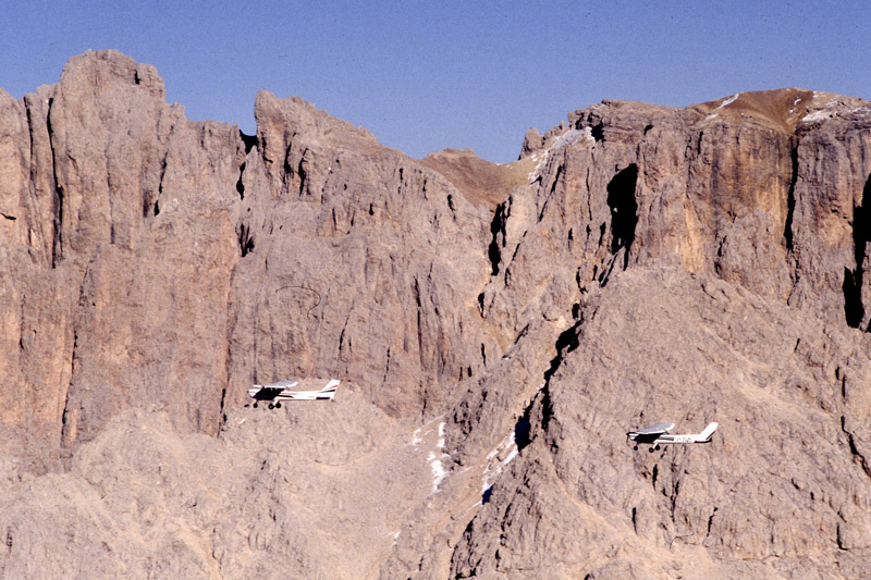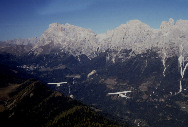 | E' ottobre, c'e' alta pressione da qualche giorno. Siamo tre istruttori dell'Aero Club Forlì e con tre allievi siamo alla fase finale dell'addestramento per il secono grado, che prevede dei raid fuori sede. Si parte, destinazione Thiene. ![]() Il volo e' tranquillo in pianura: dopo il Po , l'Adige, Vicenza sulla sinistra ed eccoci arrivati. Pista in erba, piccolo bar: un panino ed una visita all'hangar delle Alpi Eagles !! ![]() ![]() Ripartiamo con destinazione Trento, ma la rotta non e' diretta... ![]() inizialmente e' verso Fiera di Primiero e il paesaggio in breve cambia ![]() ![]() Lasciamo a sinistra la Valsugana ![]() Abbiamo appena sorvolato Fiera di Primiero ed ora puntiamo dritti al Passo Rolle lasciando il gruppo delle Pale di S.Martino a destra. Davanti a noi S.Martino di Castrozza ![]() ![]() ![]() Il Cimon della Pala e' impressionante con le sue pareti a picco ![]() Verticale Passo Rolle, a destra la Marmolada: proseguiamo ancora un po' in questa direzione ![]() Superata la Marmolada, viriamo a sinistra ![]() Passo Pordoi ![]() Il Gruppo del Sella ed il famoso Passo ![]() Imbocchiamo la Val di Fassa e sorvoliamo il Catinaccio ![]() ![]() ![]() ![]() ![]() Ormai siamo su Cavalese, ma lo spettacolo non e' finito ![]() ecco la valle dell'Adige ![]() sosta a Trento per il rifornimento ![]() Siamo di nuovo in pianura ![]() foto ricordo... ![]() Formazione ![]() ![]() ![]() Non ho piu' notizie di un allievo, ma gli altri due ora sono piloti di linea. Con una gita così.abbiamo lavorato bene per far prendere loro il "morbo di flight". ------------------------ Un grazie particolare a Gilberto, che mi ha prestato le diapositive. |