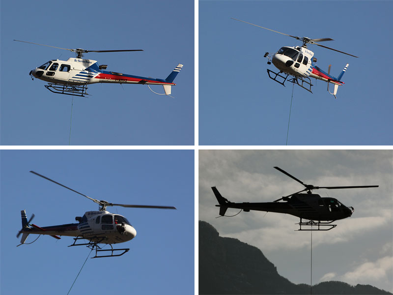 | Compito: portare questi pesanti tronchi ![]() sul vicino pendio, dove faranno da barriera di sicurezza contro un'eventuale frana ![]() Soluzione: noleggiamo un elicottero !! ![]() E' successo ad Avio, paese del basso Trentino a due passi da Ala. E' uno spasso avere un elicottero che continua per ore a fare lo stesso percorso: hai tempo si spostarti, di riprenderlo segliendo posizioni e usando focali diverse ![]() ![]() Eccolo mentre inverte la rotta "a punto fisso" per non far oscillare troppo il cavo fissato al gancio baricentrico ![]() ![]() Le consegne dei tronchi continuano senza sosta ![]() ![]() e io lo riprendo sempre da nuove posizioni ![]() Ehi, si sta abbassando ! Forse si deve rifornire ![]() Proprio cosí: eccolo vicino al suo mezzo d'appoggio, con uno sfondo suggestivo: l'antica Pieve, una chiesa altomedievale dedicata all'Immacolata ![]() La ditta Air Service Center e' pavese, ma sia a Vipiteno che a Cortina, mantiene dislocato un elicottero ![]() L'Ecureuil ri-decolla, trascinando il cavo ![]() ![]() Certo dev'essere monotono continuare per tutto il giorno a spostare tronchi ![]() ma ogni giorno l'utilizzo cambia: si porta merce ad un rifugio, un traliccio, un pezzo di funivia, cemento per fondamenta oppure travi per un tetto ![]() una bella inquadratura con le montagne sullo sfondo ![]() un'altra consegna... ![]() ...ed e' tempo di rifornirsi ancora ![]() Scambio due chiacchiere con il pilota ![]() E' passato un anno dal mio ultimo volo sull'MD80 e la transizione forzata verso il pre-pensionamento non e' stata traumatica, grazie anche alla decisione di ristrutturare la casa dei miei genitori, nella quale spero di trasferirmi nel corso del nuovo anno. ![]() Tanti cari auguri di Buon Natale e auguro a tutti di trascorrere un meraviglioso 2010 ![]() |